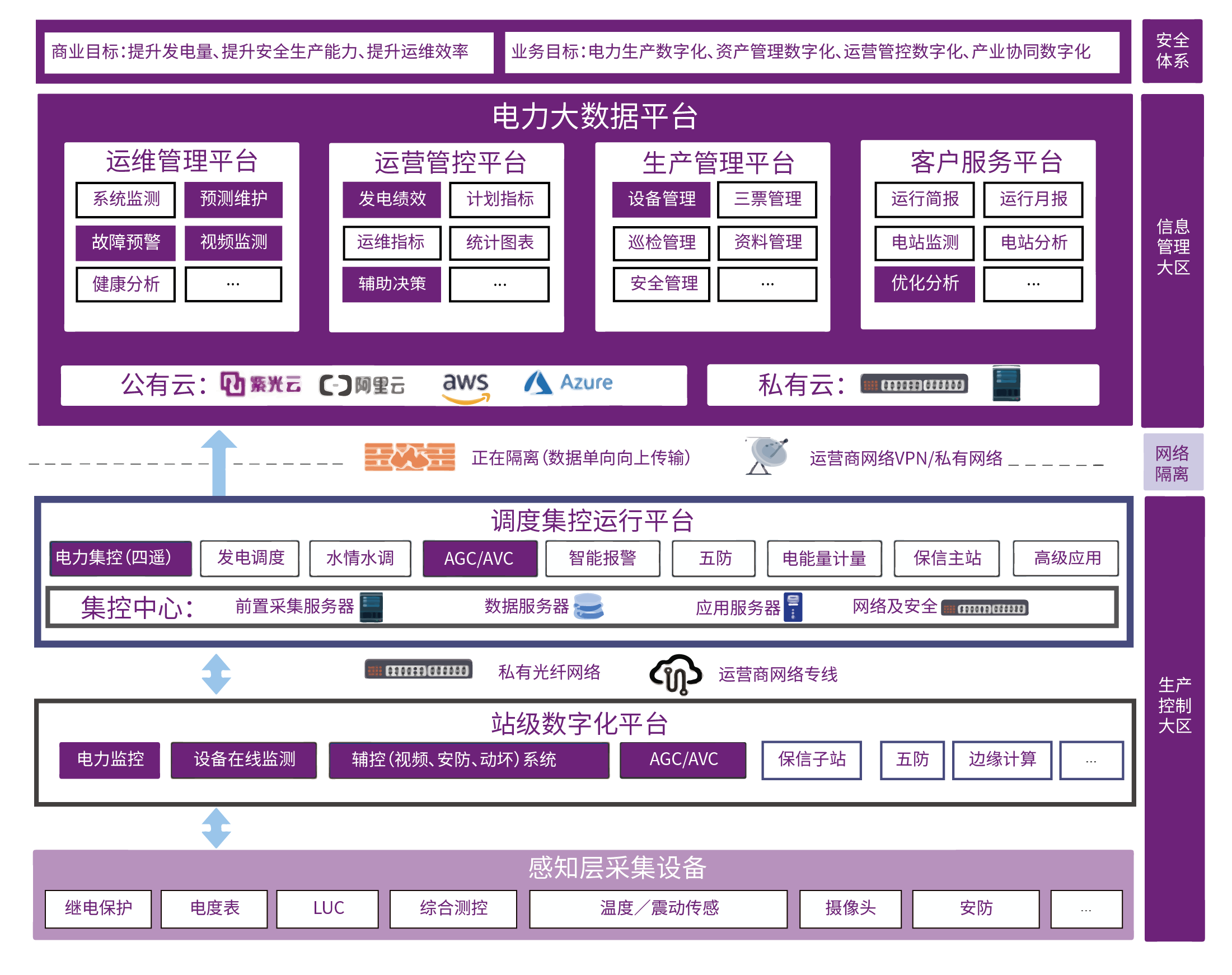 電站進行數字化改造,分區域建設調度集控中心,一體化云平臺完成數據集成,實現基于數據驅動的業(yè)務優(yōu)化,跨業(yè)主 、跨地區、跨行業(yè)的實現優(yōu)勢資源共享,為各類電站提供一站式托管服務,逐步形成一個或多個虛擬發(fā)電公司,通過共享云平臺提供最優(yōu)發(fā)電控制 、上網競價和線上交易等增值服務,提高中小型發(fā)電企業(yè)的市場競爭力。